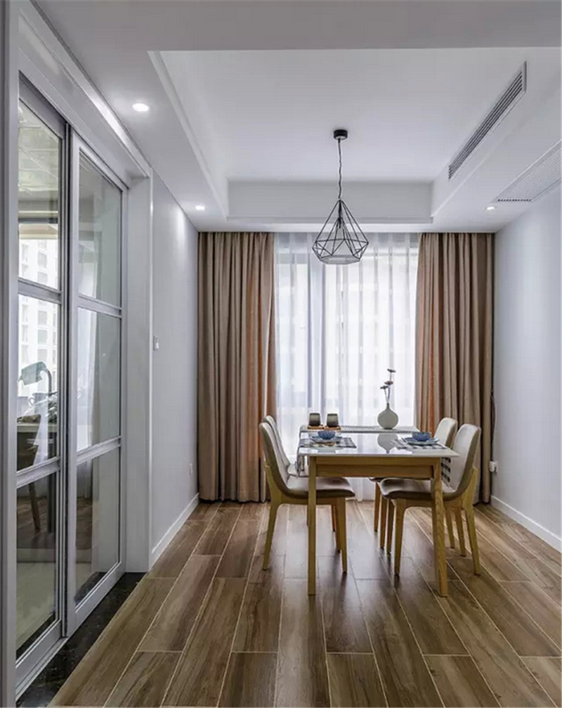 | 案例說明 | 客廳設(shè)計(jì)講究的是簡約、穩(wěn)重,深色的電視柜、淺色的茶幾,沙發(fā),餐桌使得整個空間即穩(wěn)重又清新,布藝的沙發(fā)為空間增添溫暖簡潔干凈的氣息,沙發(fā)背靠窗戶,光照也使空間看起來更干凈,清新大方,富有韻律,運(yùn)用了許多相框做了一面照片墻在餐廳墻,戶主可以把具有回憶的照片放進(jìn)去,更是增添些許溫馨。臥室也采用和客廳、餐廳一樣簡單的色系床,使整個設(shè)計(jì)更加協(xié)調(diào)。 | ||